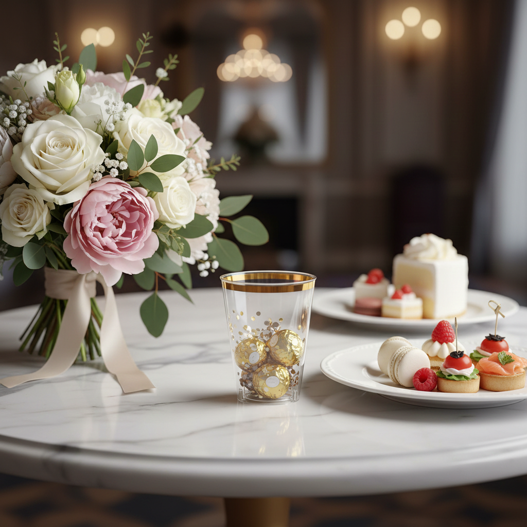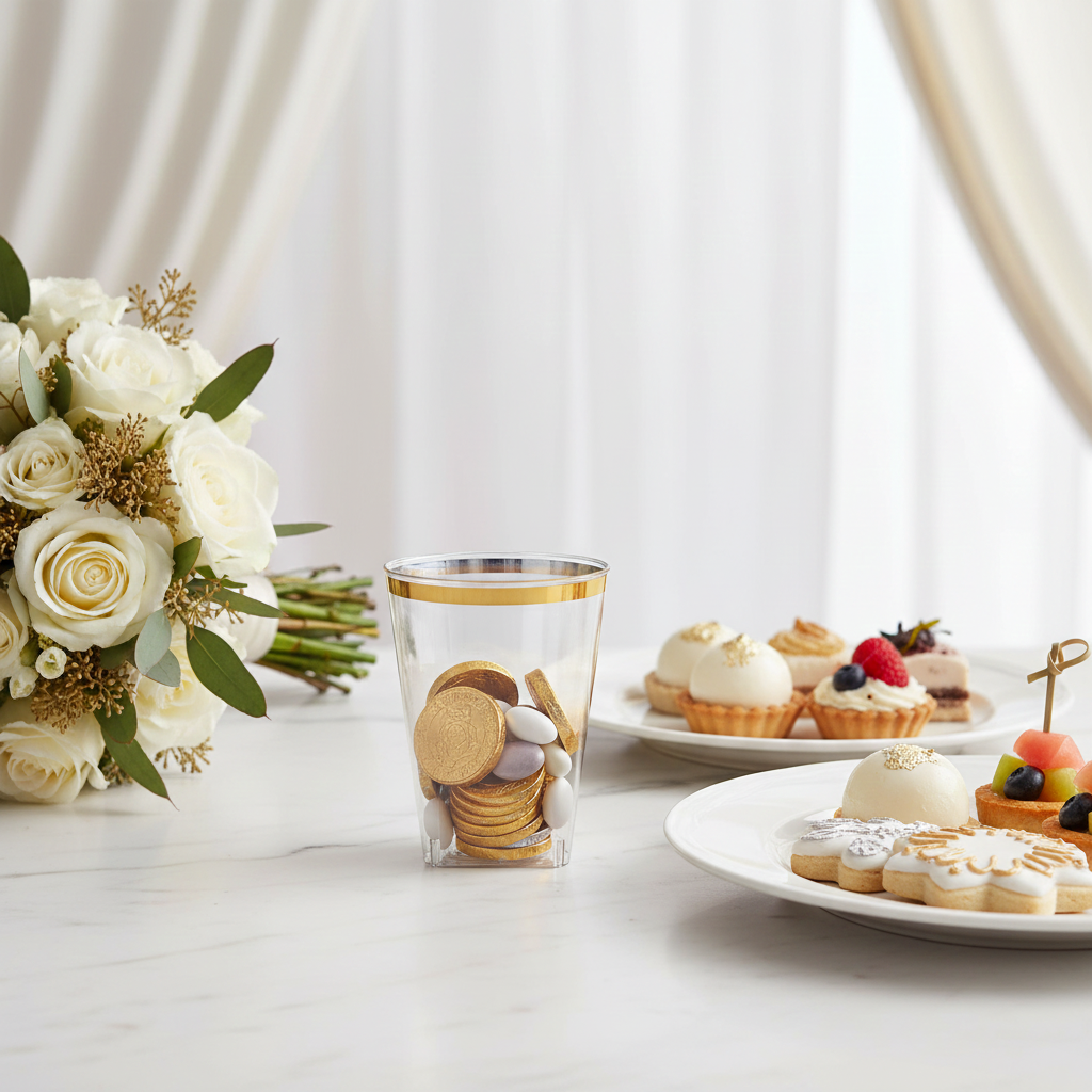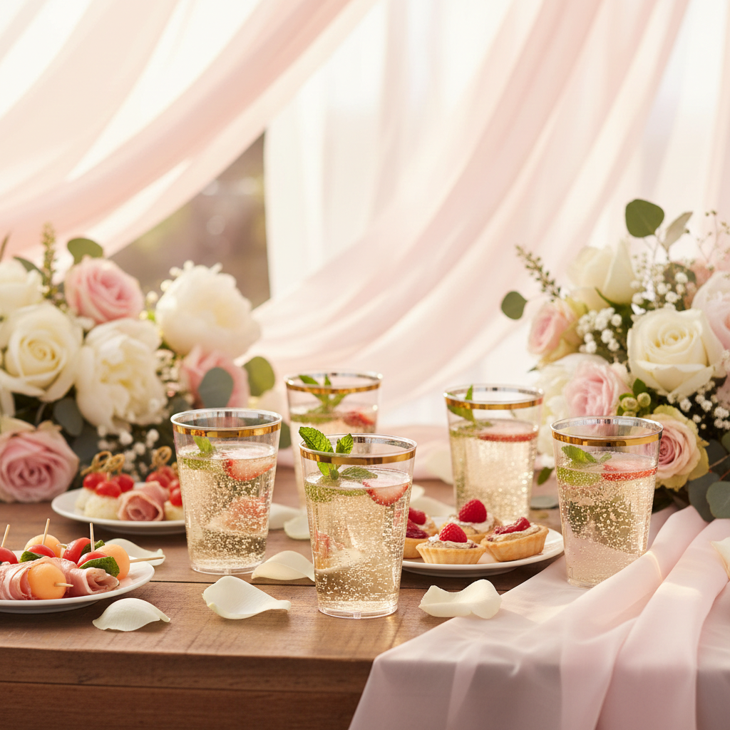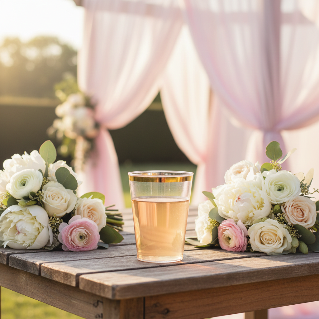 Elevate your events with these elegant 10oz clear plastic square tumblers featuring a sophisticated gold rim. Perfect for weddings, parties, and special occasions, these premium disposable cups combine the look of real glassware with the convenience of plastic.