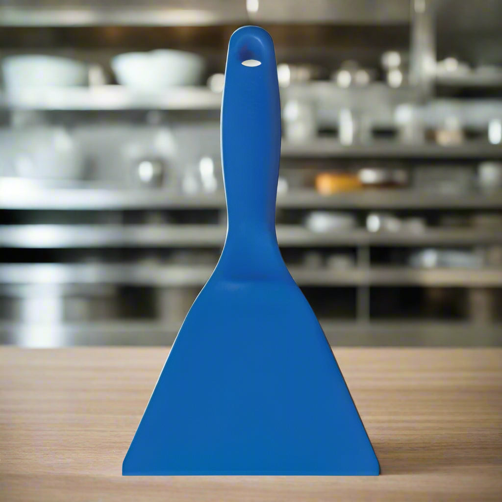 Designed for demanding commercial kitchens, the Vikan 4" Blue Hand Scraper is built to withstand heavy use. Its durable polypropylene construction and seamless design prevent bacteria growth, ensuring a clean and hygienic workspace.