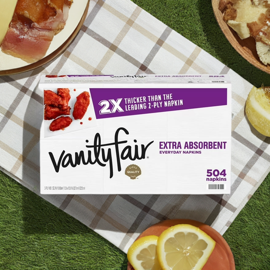 Vanity Fair Extra Absorbent Napkins offer superior absorbency, being 40% more absorbent than the leading 2-ply napkin.Crafted with a classic and stylish design, these 2-ply napkins are perfect for everyday family meals, picnics, barbecue or party. These durable yet soft napkins add a touch of elegance to your table setting.